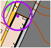 Osalla rasteista on käytetty rastiympyrän keskellä kohdistuspistettä, joka osoittaa rastin sijainnin. Oheista on hyödynnetty erityisesti viivamaisten kohteiden läheisyydessä sijaitsevilla rasteilla, jotta rastin sijainti on luettavissa kartalta ilman rastimääritettä.