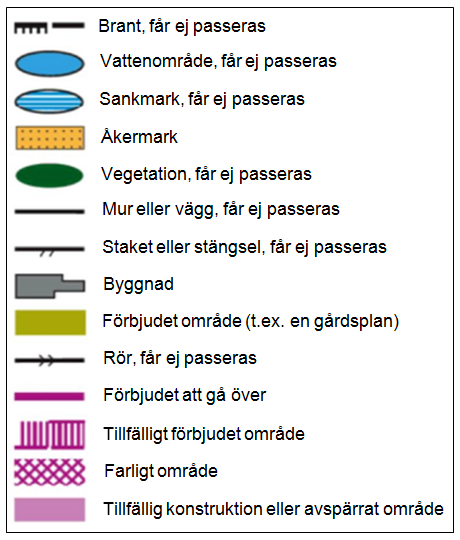 Lista över förbjudna objekt på en sprintkarta:
