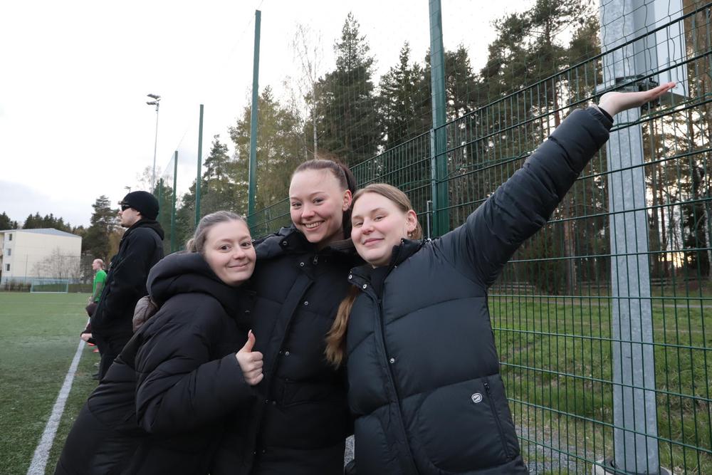 Myös kannustajia oli saapunut ensimmäiseen peliin. Naiskolmikko Monica Rinne, Iida Salminen ja Helmi Kiemunki olivat tulleet katsomaan, miten siipat pelaavat.